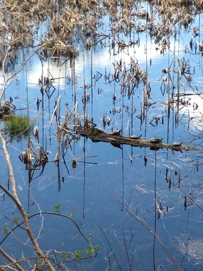 Here are some other turtle pictures I have taken on my walks on the Airline Trail in Connecticut. A copy of them I used a bottle to show the turtle’s size.